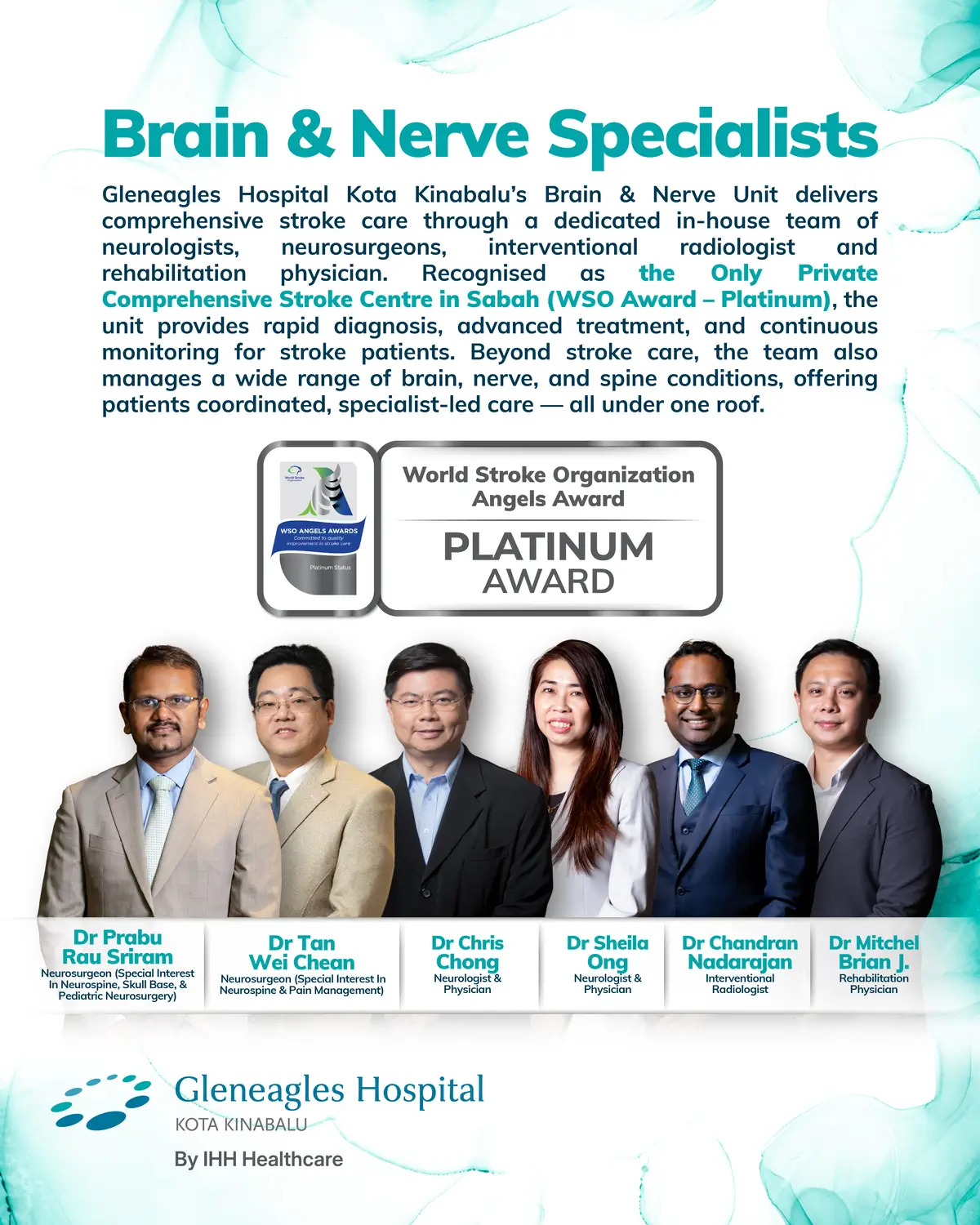 We are proud to be recognised as the Only Private Comprehensive Stroke Centre in Sabah, awarded the Platinum Award by the World Stroke Organization (WSO Angels Award).