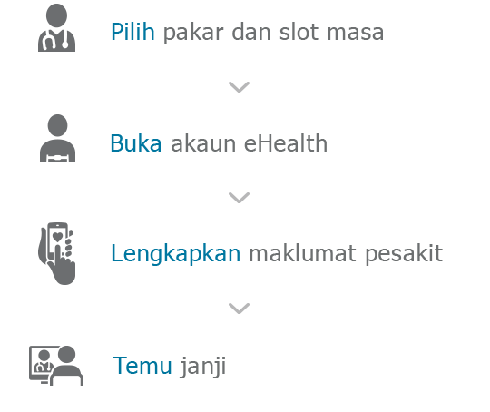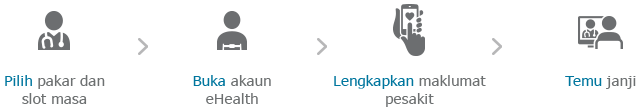 *Runding e-Kesihatan untuk pesakit baharu hanya disediakan di hospital-hospital terpilih. Kunjungi laman web e-Kesihatan kami untuk maklumat lanjut.