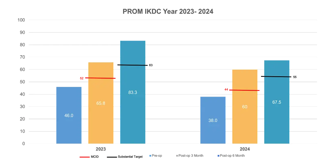 For Anterior Cruciate Ligament reconstruction (ACL), we will include the patient’s pre-operative score as a reference point to determine whether their PROM results show improvement at 3 months and 6 months post-operation, as outlined below: