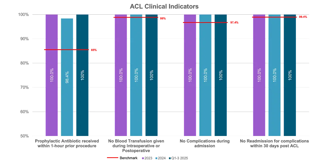 Your safety and recovery are our top priorities at GHP. For patients undergoing ACL surgery, we carefully monitor several key areas to provide the highest quality care: