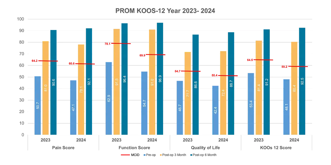 The Minimum Clinically Important Difference (MCID) is a benchmark used in healthcare to determine whether a change in your PROM score reflects a meaningful improvement in your daily life. Rather than looking only at numerical changes, MCID helps indicate whether you feel better whether that is less pain, improved mobility, or better function after TKR surgery. Reaching the MCID means your recovery progress is noticeable and clinically valuable.